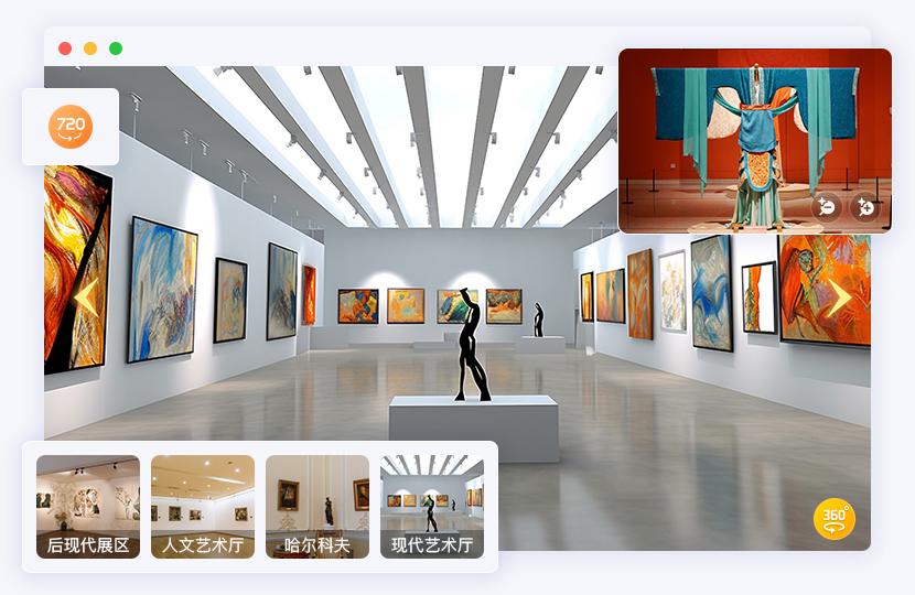 展館展區(qū)、展品以720°全景形式上傳云端,游客可在線上沉浸式參觀展館內(nèi)景和近距離觀摩展品實景。